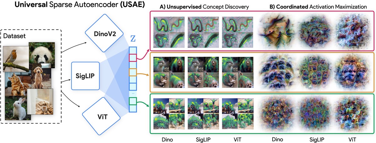 We present a framework for discovering interpretable concepts that span multiple neural networks. We develop a single sparse autoencoder that can process activations from different models and reconstruct activations across models. Our method identifies semantically coherent and important universal concepts ranging from low-level features like colors and textures to higher-level structures including parts and objects, enabling cross-model analysis.